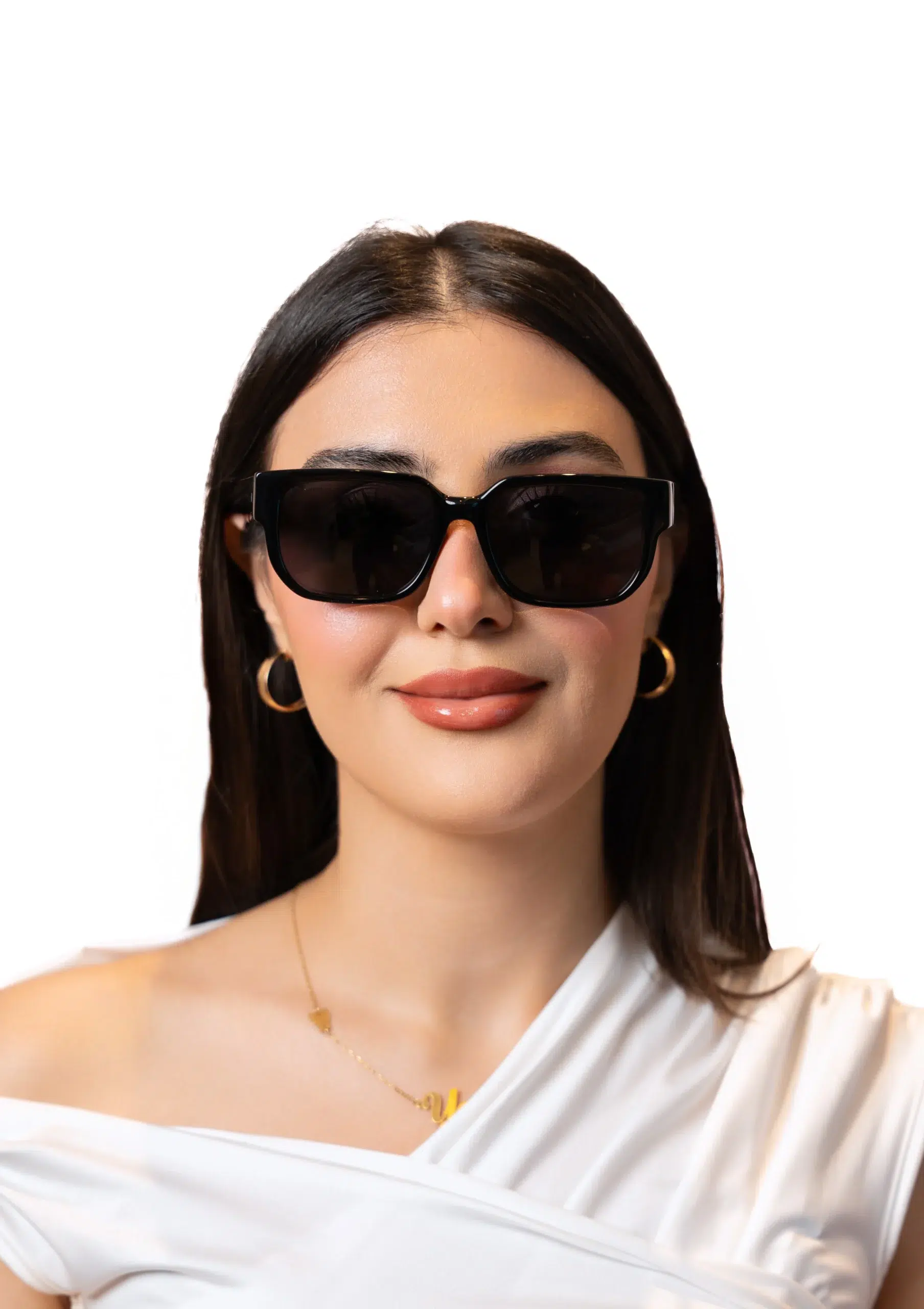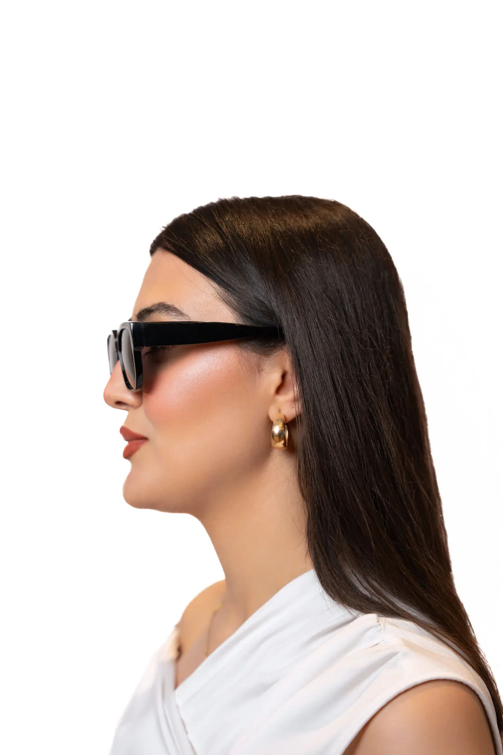 C1 (Black): Glossy black frame with black gradient lenses — timeless and versatile