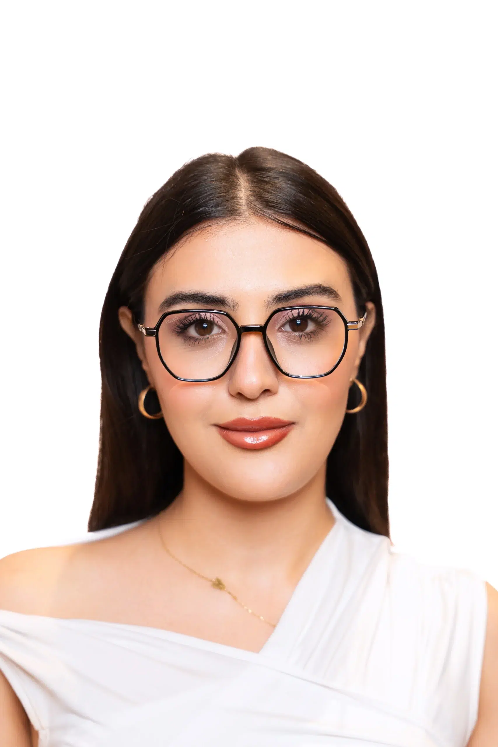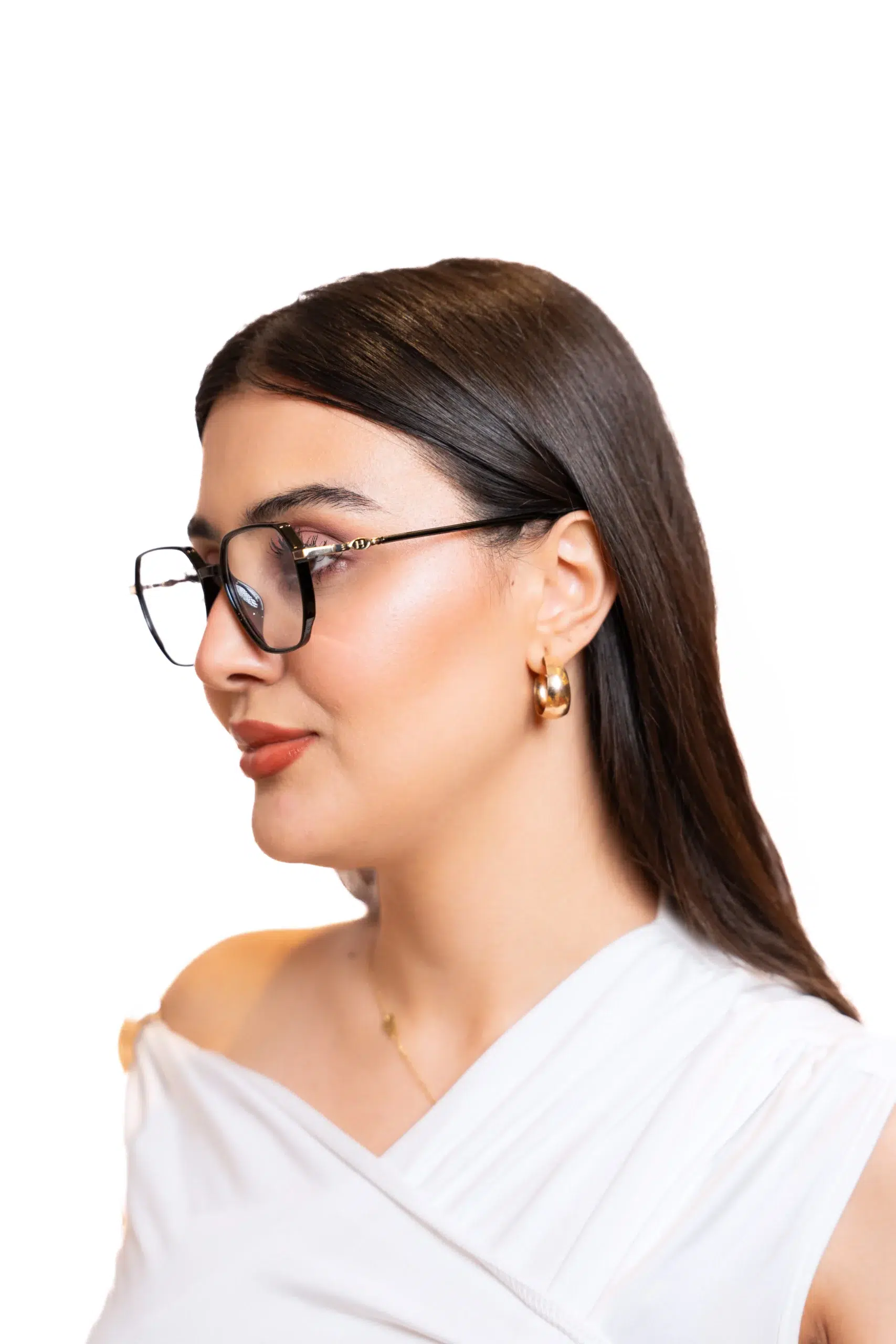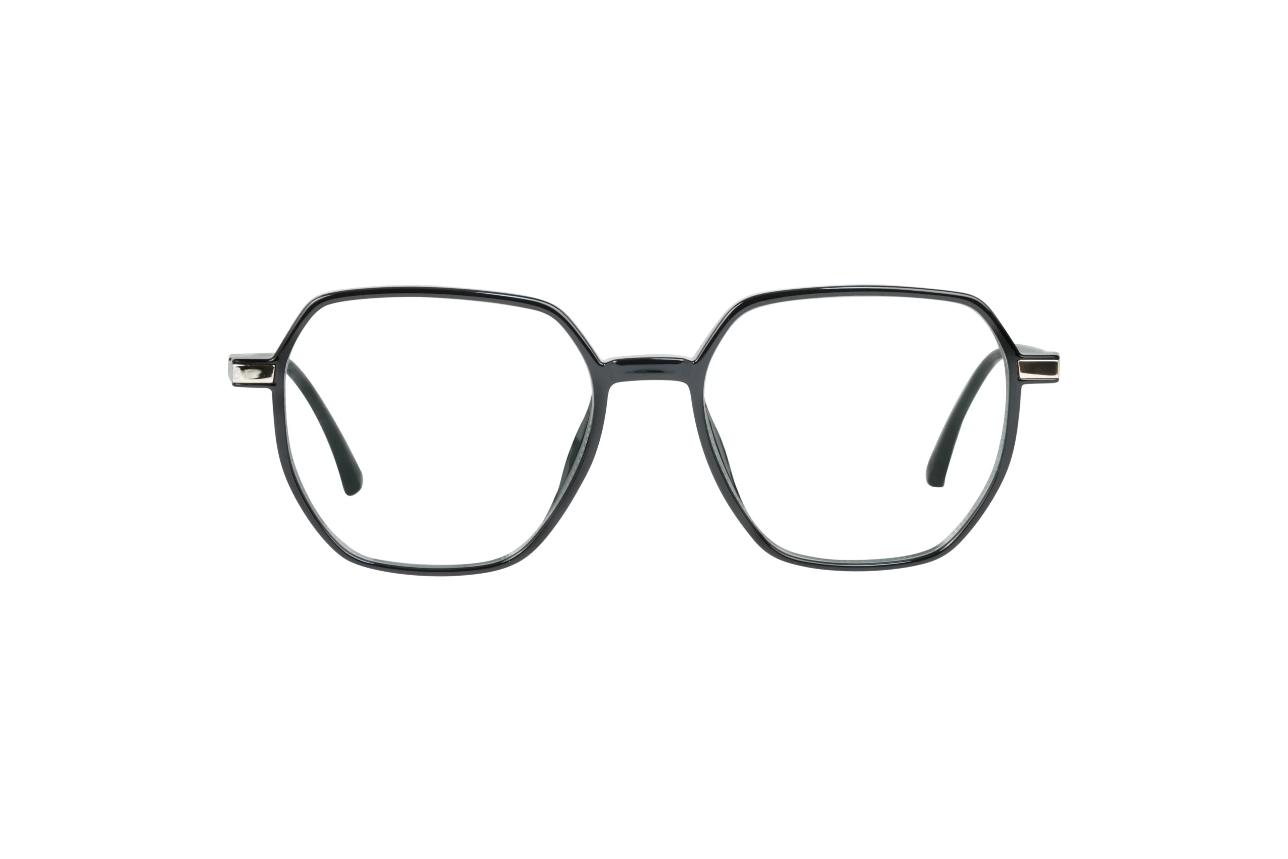 The LK-304 frame combines classic elegance with modern sophistication. Its hexagonal shape and seamless blend of glossy black and light pale gold make it an ideal choice for professionals who value both style and comfort. This hexa eyeglass is perfect for enhancing your office look.