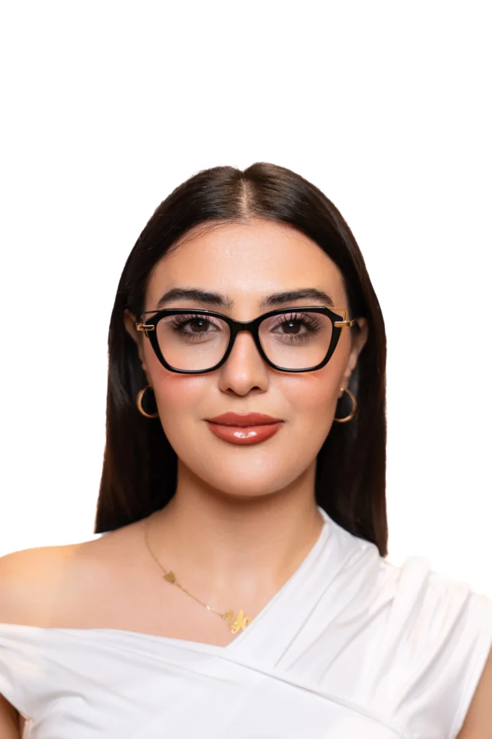 - Glossy Black with Pale Golden Frame: A timeless black acetate frame paired with elegant pale gold metal for a luxurious and professional look.