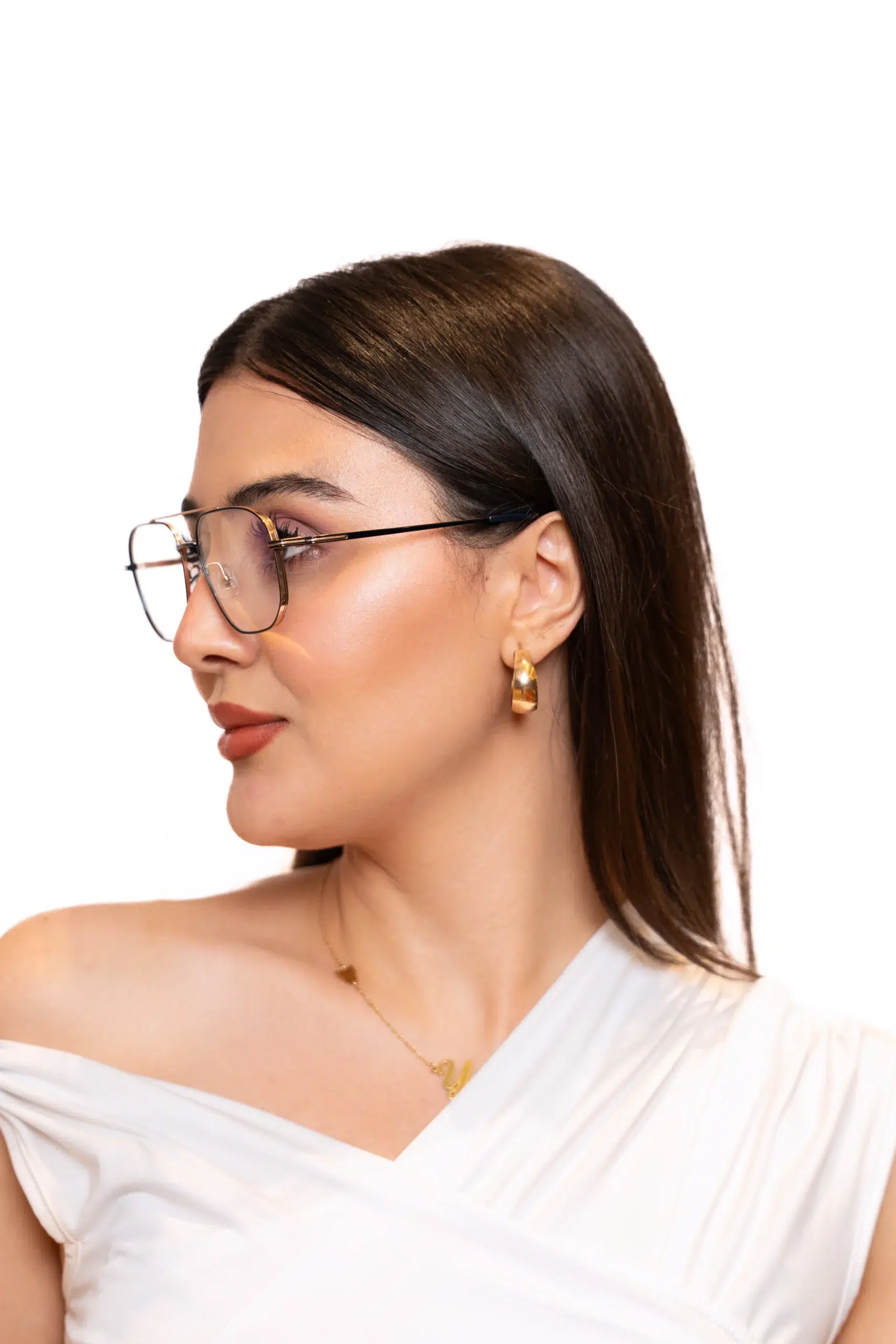 This classic aviator frame features a sleek double-bridge structure that adds a bold, timeless appeal. The black frame base is elevated with gold accents, creating a luxurious and stylish look suitable for any occasion. The thin, minimalist frame embodies elegance and refinement, ensuring it never goes out of fashion.