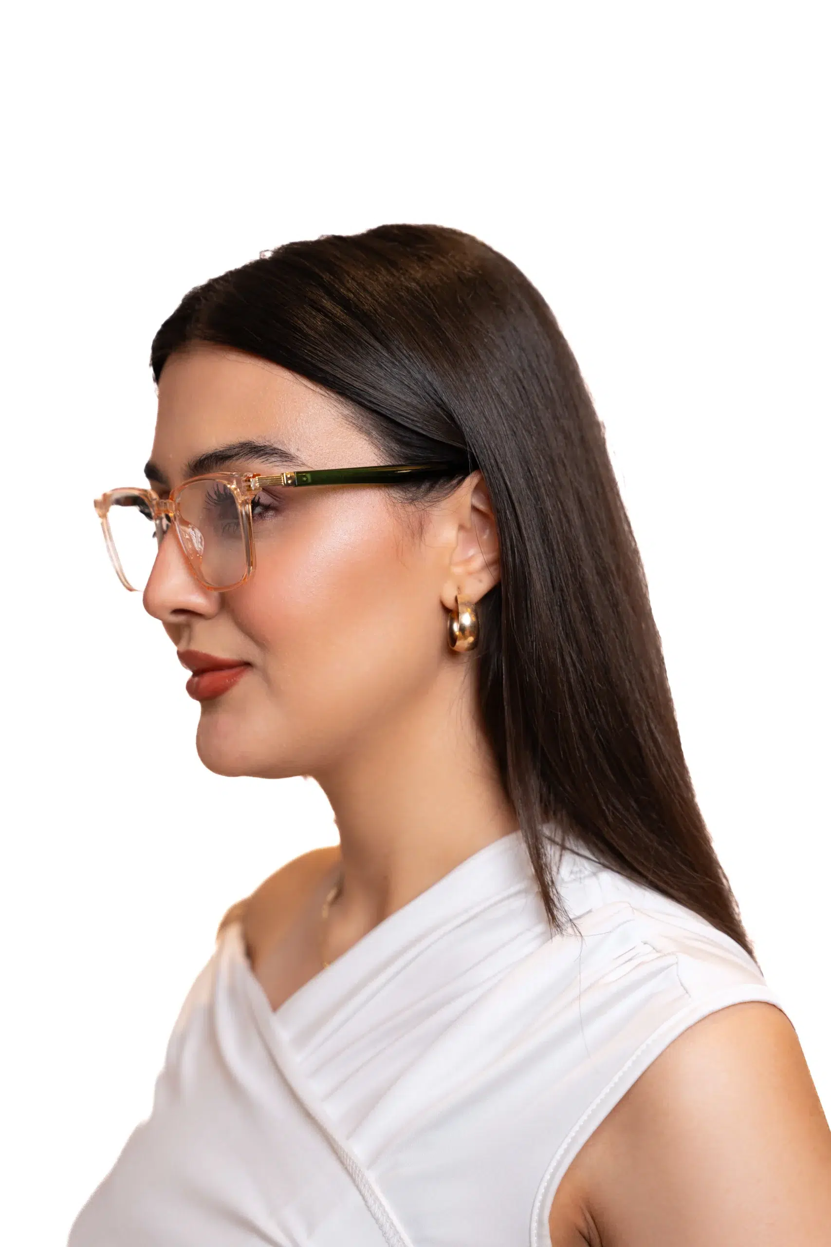 Light Transparent Orange with Green Temples (C412-P81): a refreshing color combination that radiates creativity, balance, and individuality — perfect for UAE’s dynamic, fashion-conscious wearers.